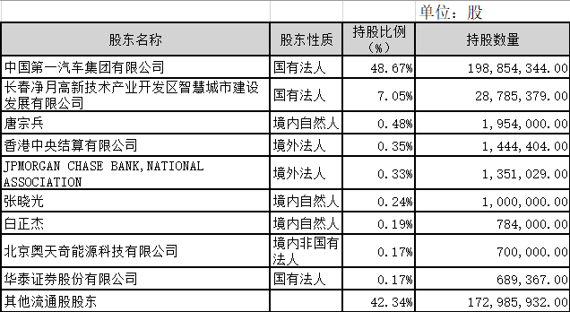 启明信息技术股份有限公司 1季度前10名股东名册