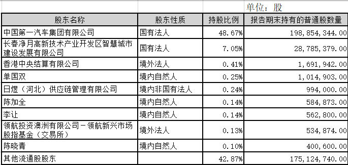 启明信息技术股份有限公司 半年度前10名股东名册